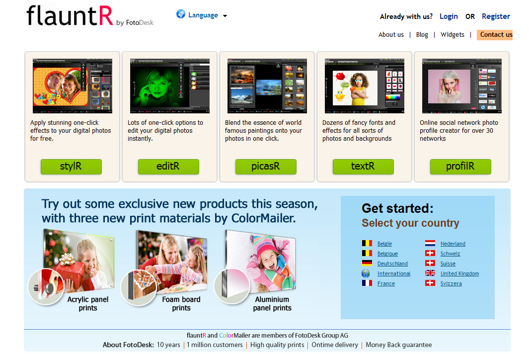 FlauntR is a free online photo editor with photo editing features similar to photoshop. Store and share your photos online, create slideshows and printing. Visit this page for what does this offers. FlauntR is a slick new tool that is almost everything what you want in a photo editor.