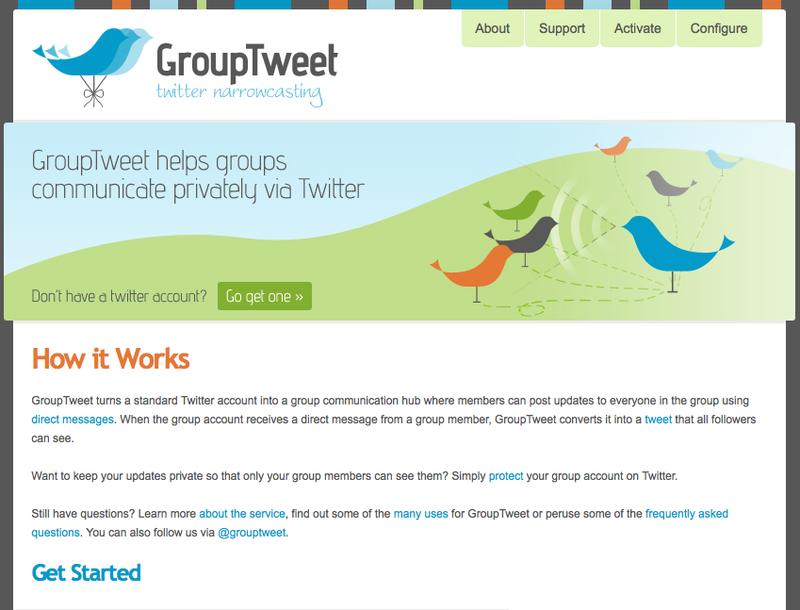 GroupTweet : This applications helps you to send the private messages to specific group of your friends. You need to create a private group account within Twitter and register that group at GroupTweet, such that all the members of the group should follow it to receive the messages. And if you send the message to that group account, GroupTweet will convert that into the direct message and will forward it to the members of the group.