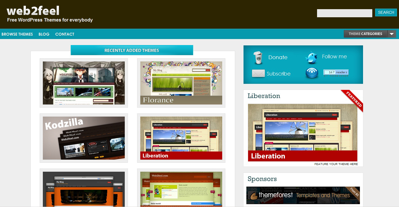 Extensive number of WordPress themes for free download. Frequently updated with new themes. Theme designers can submit their themes for inclusion.