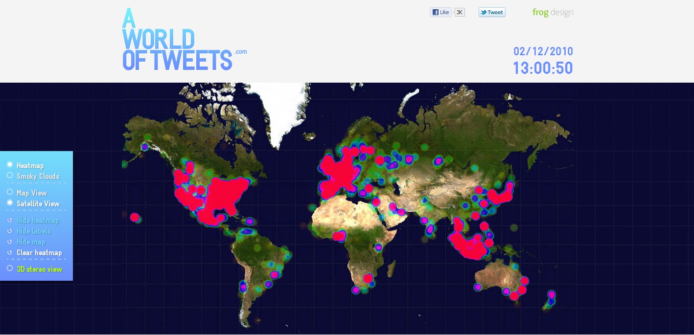 The above screen shot is the actual visualization of the tweet-frequency from around the world. The red color you see in some areas, increases with the increase in the tweets from that particular region. They call it the heat-map.