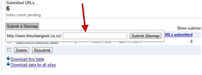 Fill in the site map as atom.xml OR rss.xml and click on Submit.
