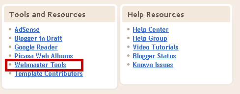 • Now scroll down the page and click on Webmaster Tools (Under ‘Other Stuff’).