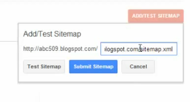 - Then you are directed to new page. In this page you can see ‘Add/Test Sitemap’. Press it. In the popup window paste the URL that you copied. Then press ‘Submit sitemap’.
