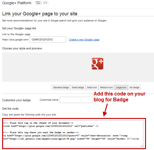 - Copy and paste this code to create a badge for Google+ page on your blog.