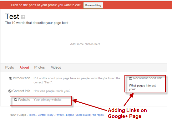 - Now on your new Google+ page look up “Edit Profile” and click on it.