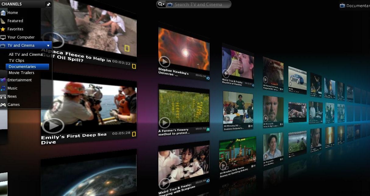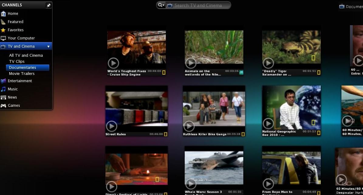 By clicking on TV and Cinemas-> Documentaries. You will see videos automatic searched from mainly YouTube then categorized from discovery channel, National Geography etc documentaries.