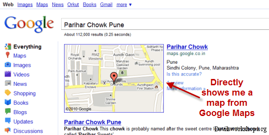 - Google showed results immediately with a snap shot of Google Maps which was more about the address.