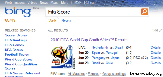 Fifa World Cup 2010 is currently underway and I wondered if we looked up search results how will both the search engines show up the results.