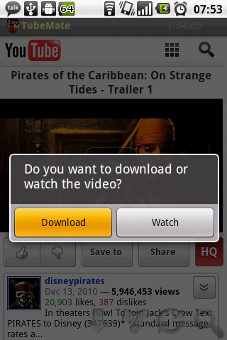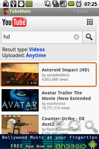 - Go to Android Marketplace and search for the app called ‘TubeMate’ and install it.