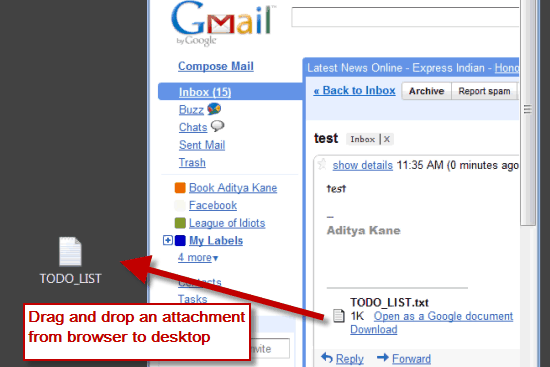 Drag and drop attachments from Gmail to desktop