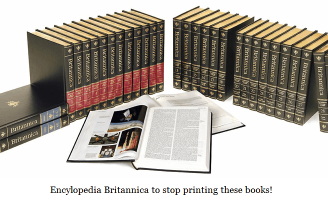 Surrendering to this change over time, Encyclopedia Britannica has announced that it will stop printing newer versions. They are discontinuing a tradition which has lasted for 244 years. It will now only focus solely on serving up premium web-based content. That model of revenue will also be tested severely, as many people simply do not want to pay for content especially when there are alternatives like Wikipedia.
