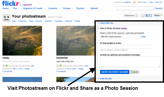 - A new option for sharing a photo stream appears which is photo-session. Simply create a photo session and share the link with friends or invite them from their Flickr accounts.