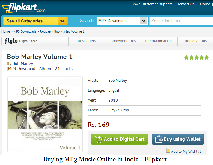 - Flipkart is India’s largest online retailer. So it makes sense that it sells music online. The collection at Flipkart is pretty much exclusively suited for Indian tastes. Though there is an international section available.