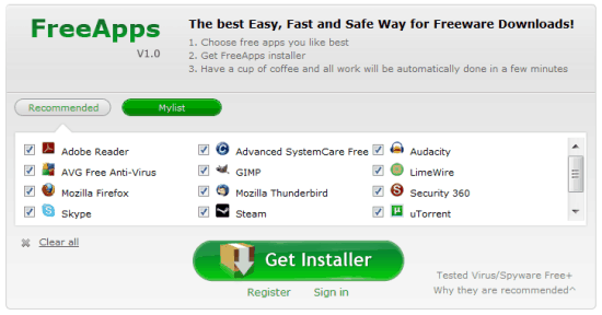 - FreeApps is great as you can install all the free applications with the installer with just a single click. Just visit the website and you will see all the software that is missing on your computer arranged in neatly category wise.