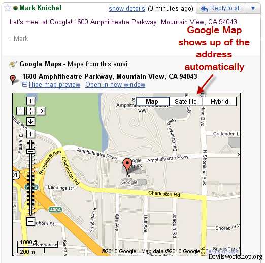 This is a great way to integrate Google Maps with Gmail. The addresses are accurate in the United States and not made available internationally. Google is planning to make it available for all international addresses to show a corresponding Google Map. I wonder if Bing Maps will go the same way with its new planned changes with Hotmail.