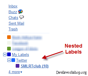 - You will have to rename the labels. As you can see in the image right above I have My Labels and under it Twitter Label and under it resides SML ReTweet Club Label. Here I renamed Twitter as My Labels/Twitter and SMLRTclub as My Labels/Twitter/SMLRTclub and that created the nested label effect as seen in the image.