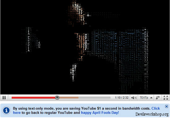 This April fools joke is quite funny considering Google introduced a You Tube format called Text P with the caption that every time someone uses TEXTp mode it saves You Tube $1 per second of viewing. 😀