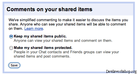 - Google Reader also will have you choose if what you share with Google Reader can be made public or you would want it to be private.