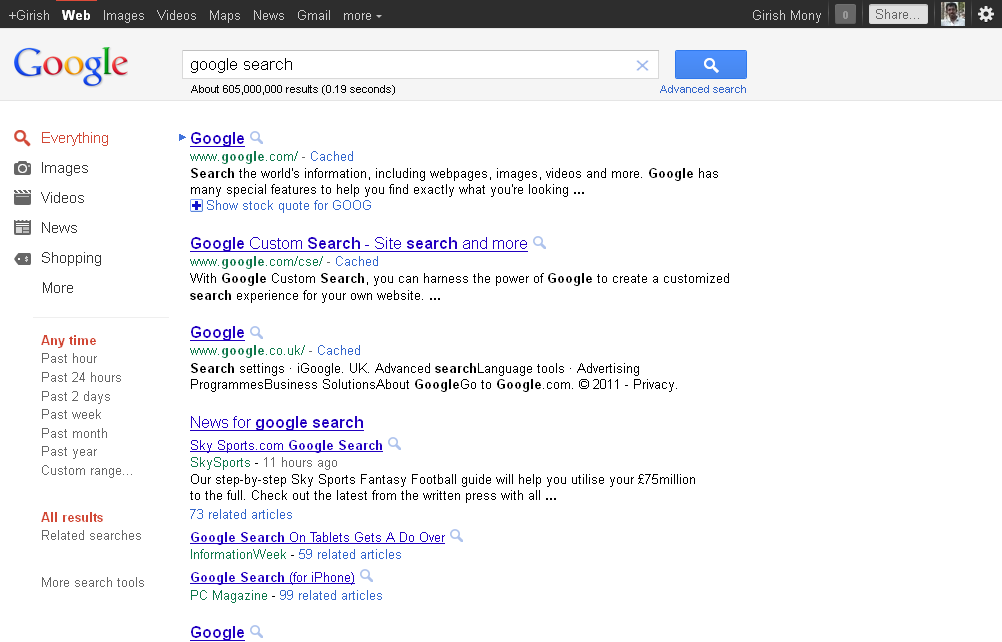 Updating Google search interface is not something new. Google repeatedly updates its search interface making the searching easier and more efficient for users. However the latest update, unifies with Google plus. Nothing more than that. Take a look at the screenshot.