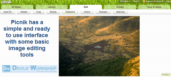 • It supports Resizing, Cropping, Rotate, setting exposure of a image, colors and sharpening images. It’s Red-Eye correction tool is also very satisfactory which is a must for any online photo storage service.