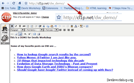 - There is no need to sign-in or register. Just add anything ahead of “http://cl1p.net” like my example from above image “http://cl1p.net/dw-demo“.