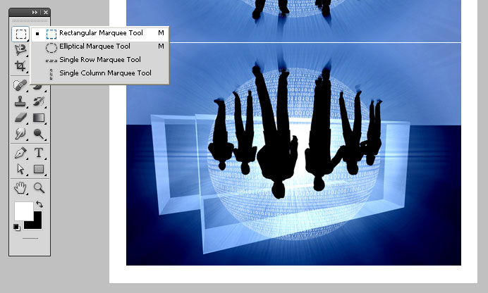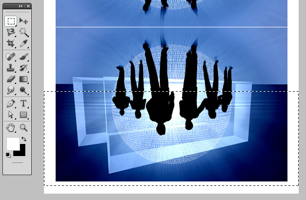 Select the Rectangular Marquee Tool (M) and make a selection on the below image. Ideally it should be from bottom up to half-size of image like the one shown below.