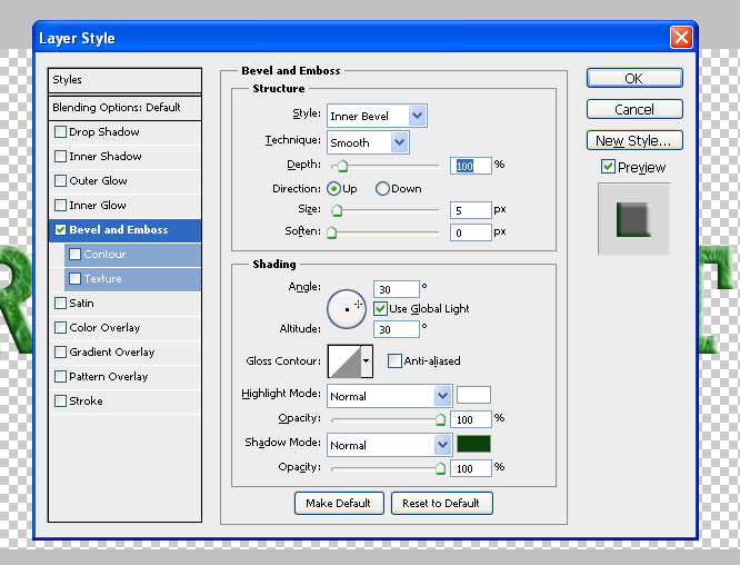 - Click on Bevel and Emboss option and take values like I have in the image below.