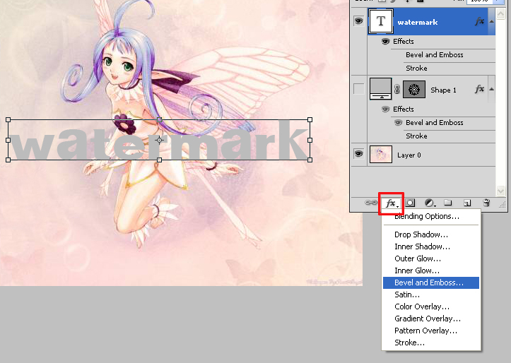 Now select the text layer and let’s give it some style. Here we give Bevel and Emboss effect to the text. Just go to layer palate and click on layer style option. See the below image.