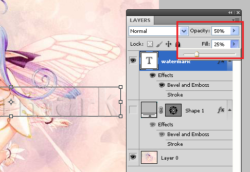 - Keep Opacity Value 50% and Fill Value 25% as you can see the below image.