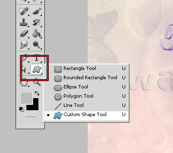 You can also use custom shape or a log as watermark. Just go to Custom Shape Tool and click on it.