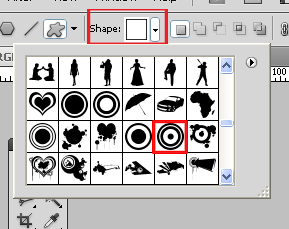 As seen in the image below you can see many of Custom Shape in the palate. Just select the one which you like. Here I went with the target shape which has concentric circles.