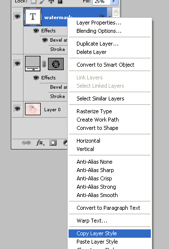 Now apply the same style to Custom Shape which was we gave to text. Go from layer style or just right-click on the text layer and Copy Layer Style.
