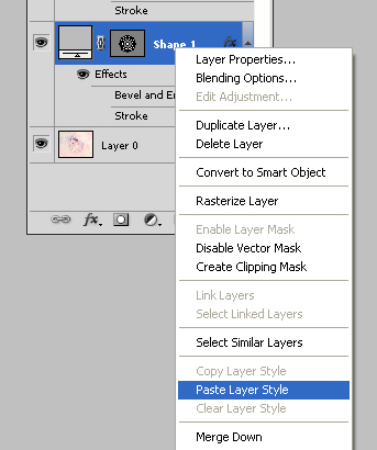 Now select the Shape layer and right-click on it. Then paste Layer Style.