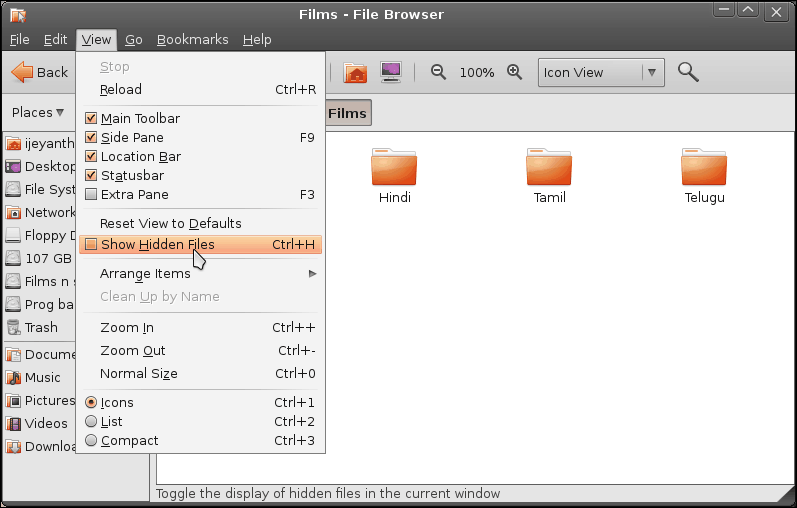 The following step is used to Show/View the Hidden files.