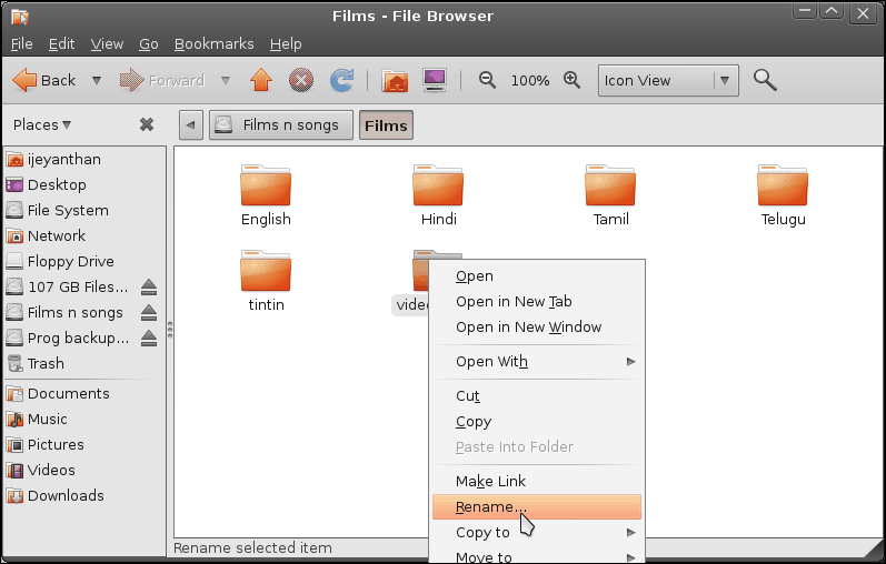 - Select the folder you wish to hide and rename it by either clicking F2 in keyboard or by a right click -> Rename..