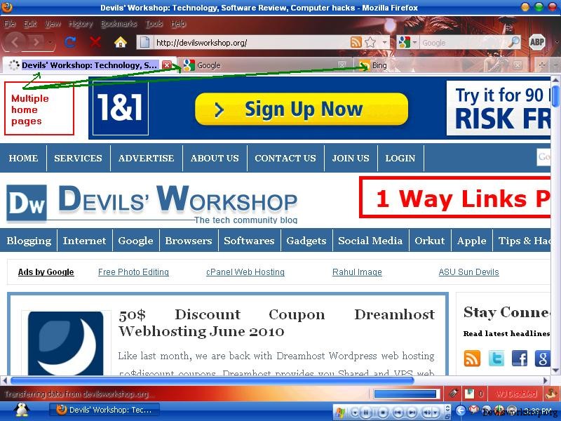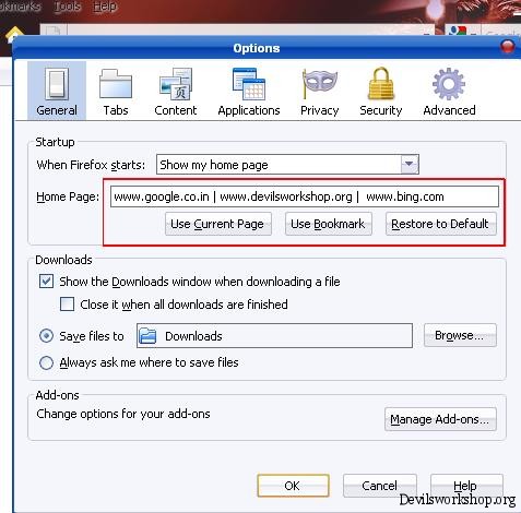 - So to set Multiple Homepages, www.google.co.in | www.devilsworkshop.org | www.bing.com