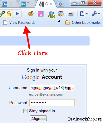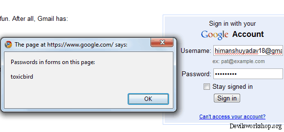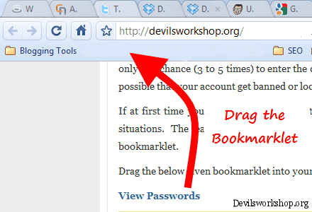 Now visit any webpage in which login is required. For example, let’s say Gmail.com. Enter your Gmail ID and password. Now click on the bookmarklet on the bookmark bar which you dragged in previous step.