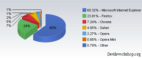 When I started writing for Devils’ Workshop last year, I wrote a post about how the pie is shrinking for Internet Explorer when it comes to the browser market. In those days Internet Explorer market share had fallen from heady 70’s down to mid 60’s when it come to the percentages. The one browser gaining momentum was Firefox and closely on its heels was Chrome.