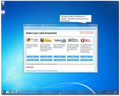 Mircrosoft has lost a anti-trust case in Europe and has paid a fine along with informing customers of other products. Here is a screenshot of what XP, Vista and Windows7 users will see if their OS has been purchased in Europe.