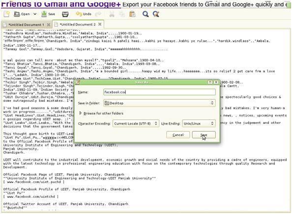 - Copy the data now generated and save it in a text file with the extension “.csv”.