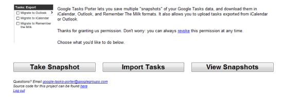 - We can snapshots of Gmail Tasks and download them in HTML, iCalendar and Remember the Milk format files.