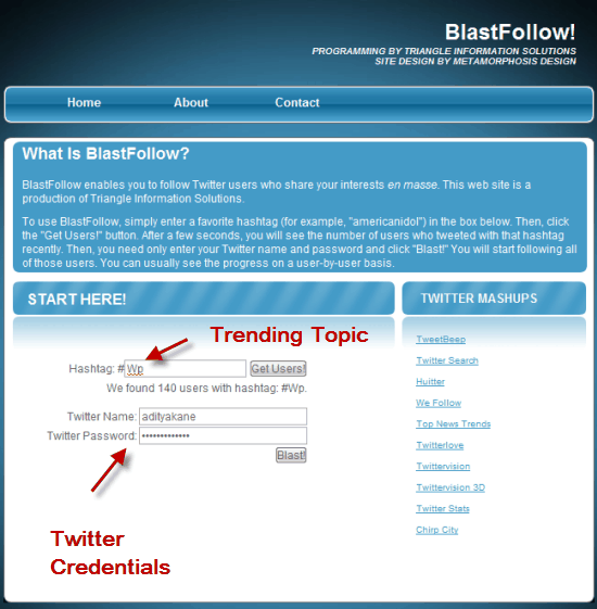 - I use Blast Follow to look up users in very niche and unique topics on which they trend.