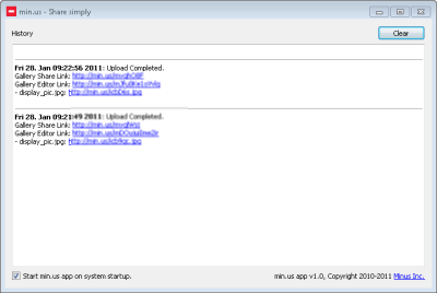 - I could also check the history of all the files I uploaded to Min.us. This is a good idea because there desktop app did not show any option for accessing saved files with an account (while on the website we can get access to galleries by signing-up to an account).