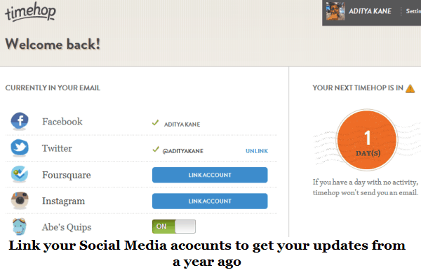 Sign up with your Facebook account on Timehop.com and also link your other account on social networks like Twitter, Foursquare and Instagram.