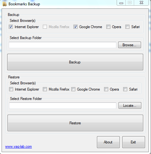 So, here’s a free application which will help you backup all your bookmarks and then restore it to another computer’s browser easily with a click of a button.