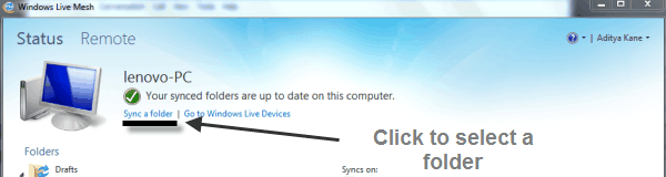 - Open Live Mesh on your computer and log into it. Now look up the draft folder by clicking on ‘Sync a folder‘. Ideally the draft folder will be at this path.