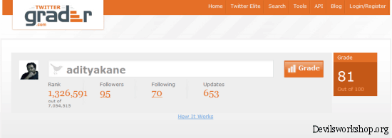 - Twitter Grader is a website which gives your Twitter profile a grade based on many different values.