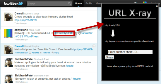 I use Twitter and Facebook extensively. As a blogger I do end up clicking on a lot of short-urls. I do not recommend looking at all the links with URLXray but only the tweets or updates which are suspect. This is usually when there is a generic message or no message accompanying the short-url.