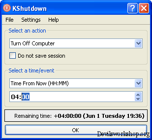 Kshutdown is a multi-platform utility that can be used to schedule system Shutdown for Windows/Linux/KDE. Set the date and time to whenever you want your system to turn-off automatically. Apart from shutdown, this utility also allows you to restart, hibernate, lock screen or logout.
