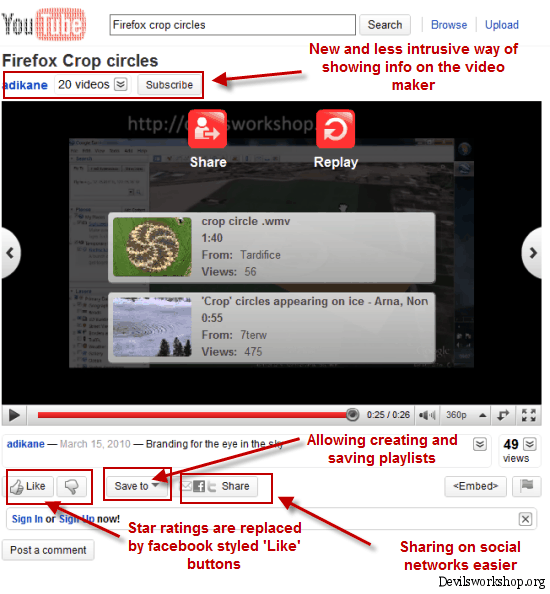 Now more five star ratings for your videos. It has been replaced with Like and Dislike buttons something which clearly has been borrowed from Facebook. I personally like this system as it will be used more than the 5 star ratings format. People prefer liking or disliking something rather than rating something.